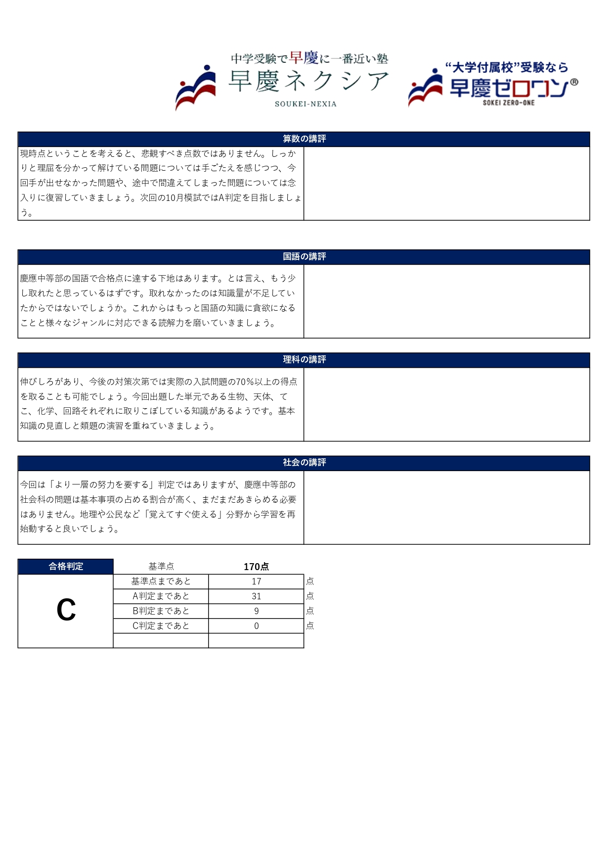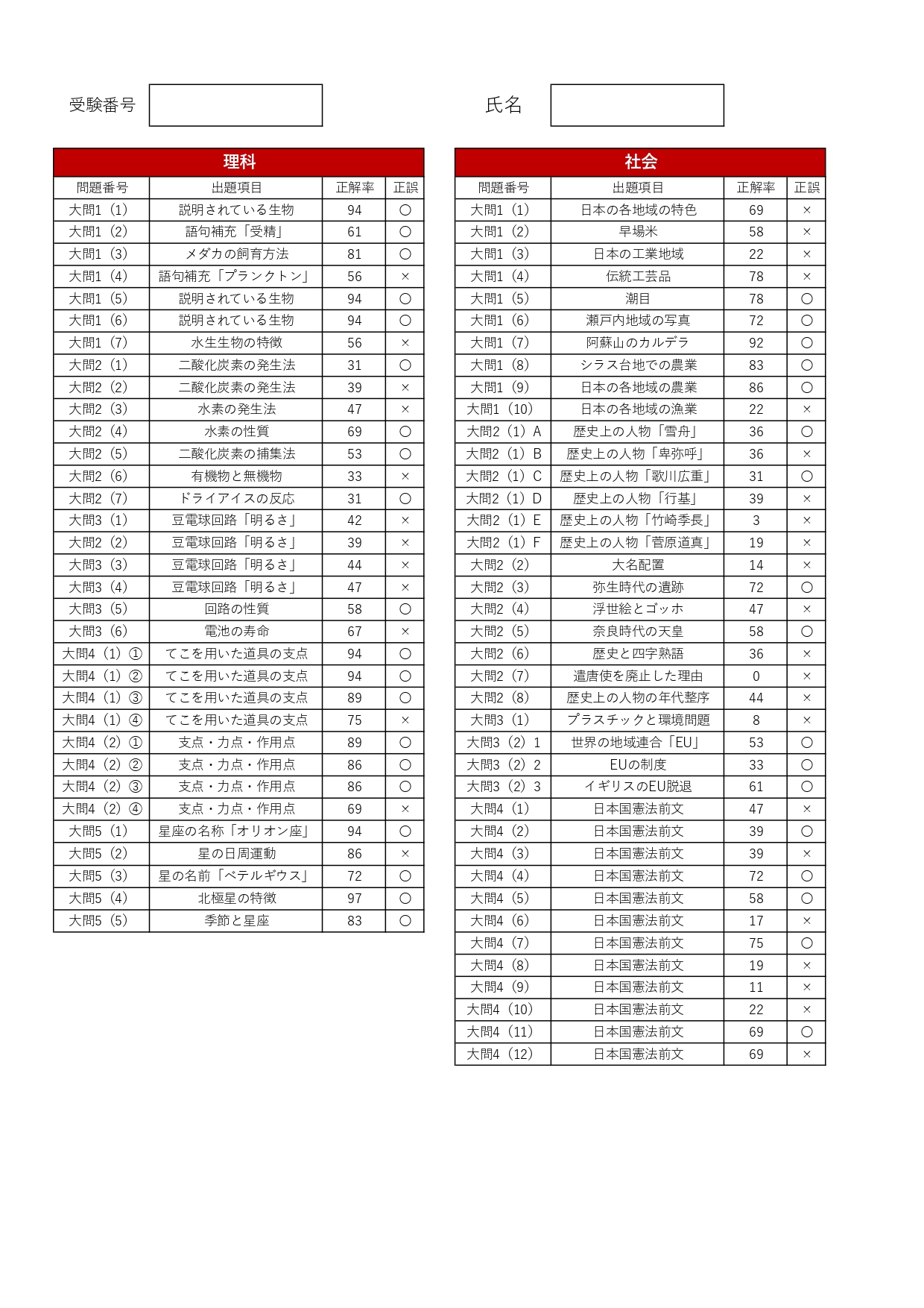 理科と社会の問題数が思ったより多くて、最後バタバタしてしまいました。今後は時間を意識して解くようにします!